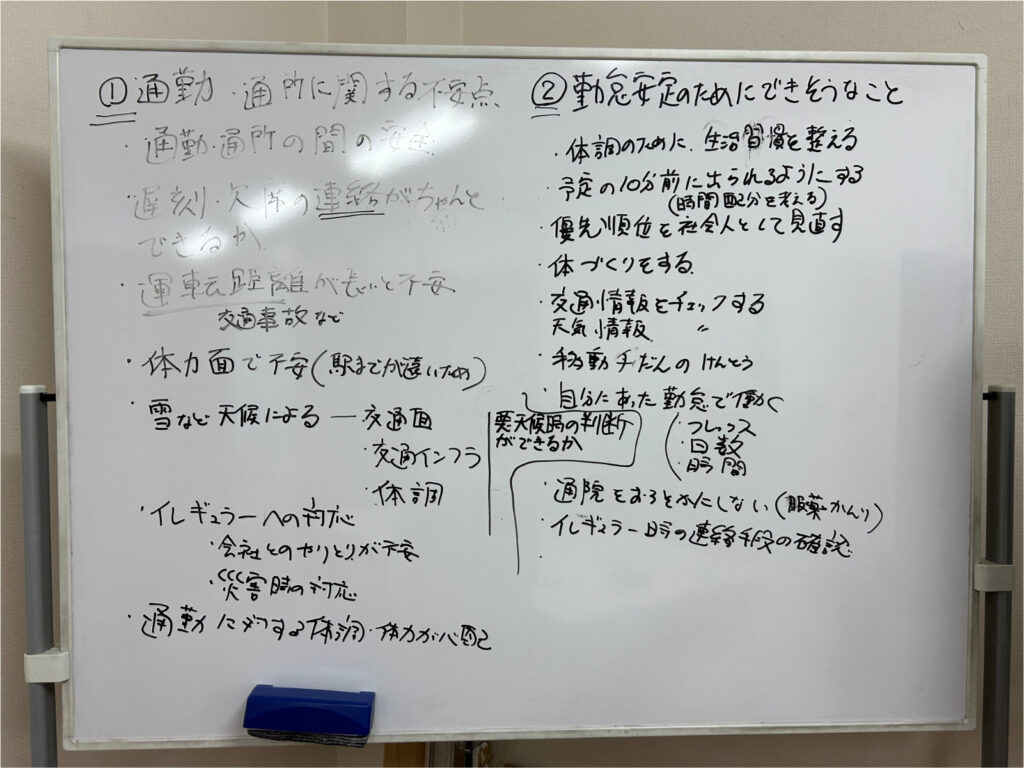 就労移行支援事業では企業等への一般就労を希望される利用者様へ、就労に必要な知識や能力を向上させるための訓練を実施しています。また日々の生活の中で社会生活に必要なビジネスマナーや労働習慣を養えるよう、支援を行っています。